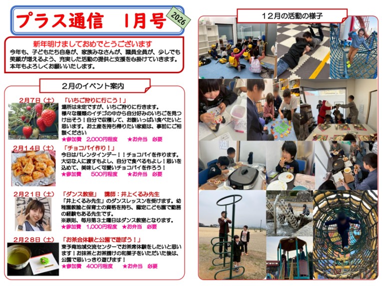 プラスでは、利用児童生徒の自立・自律に繋がる支援を提供し、 利用児童本人と家族に加え、我々社員一同も含めたみんなの笑顔を増やしたいという理念のもと、日々の活動を提供しています♩